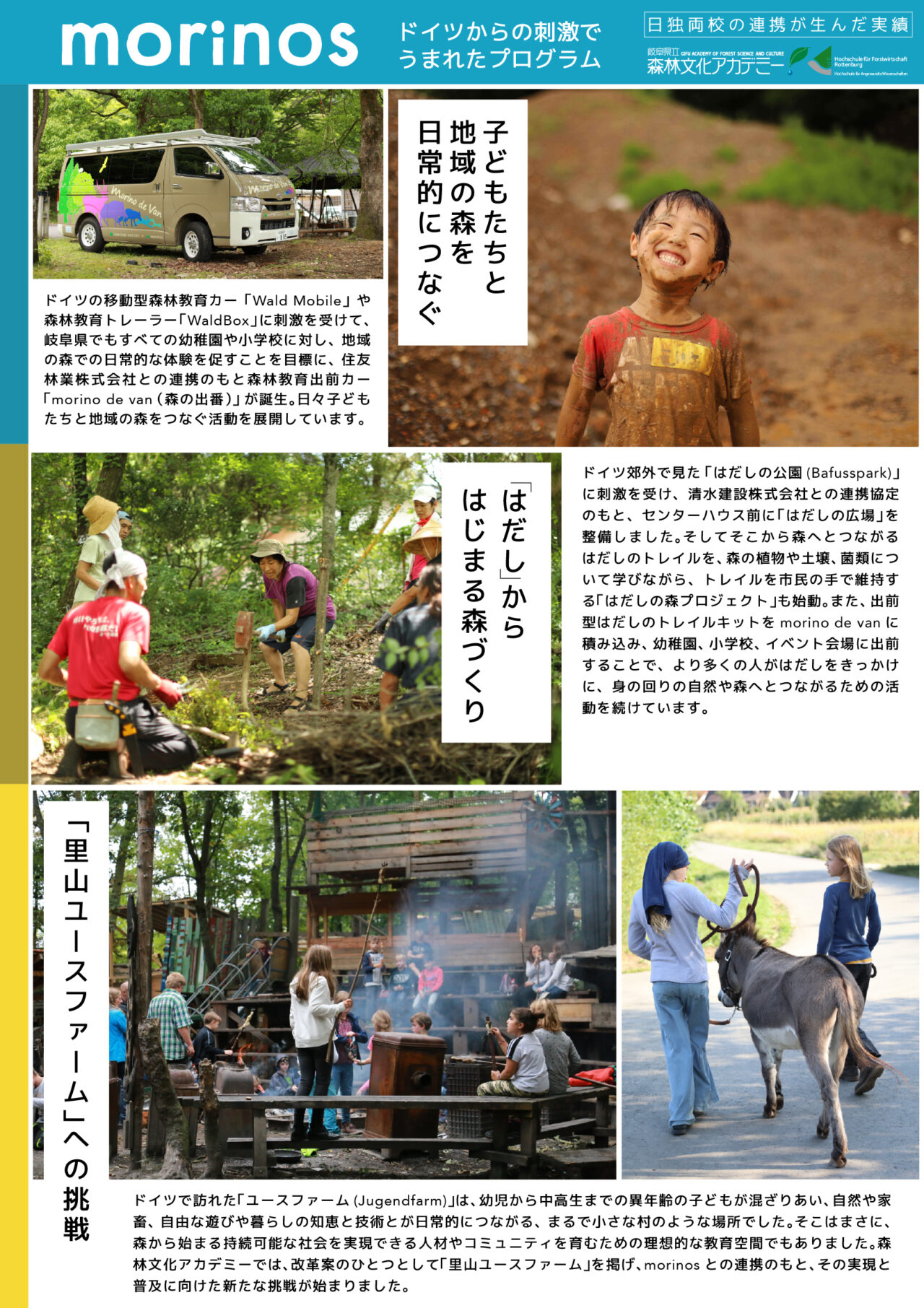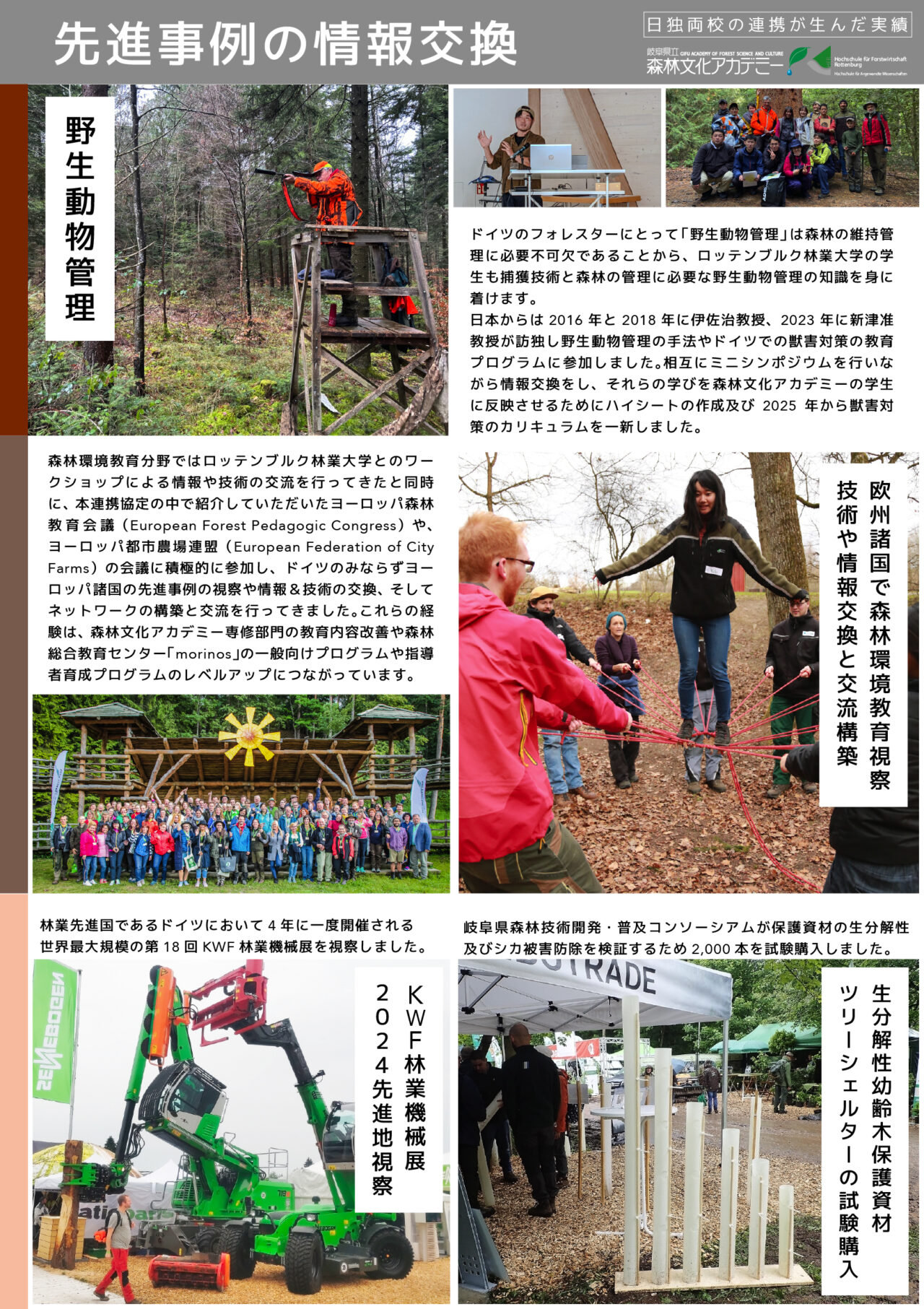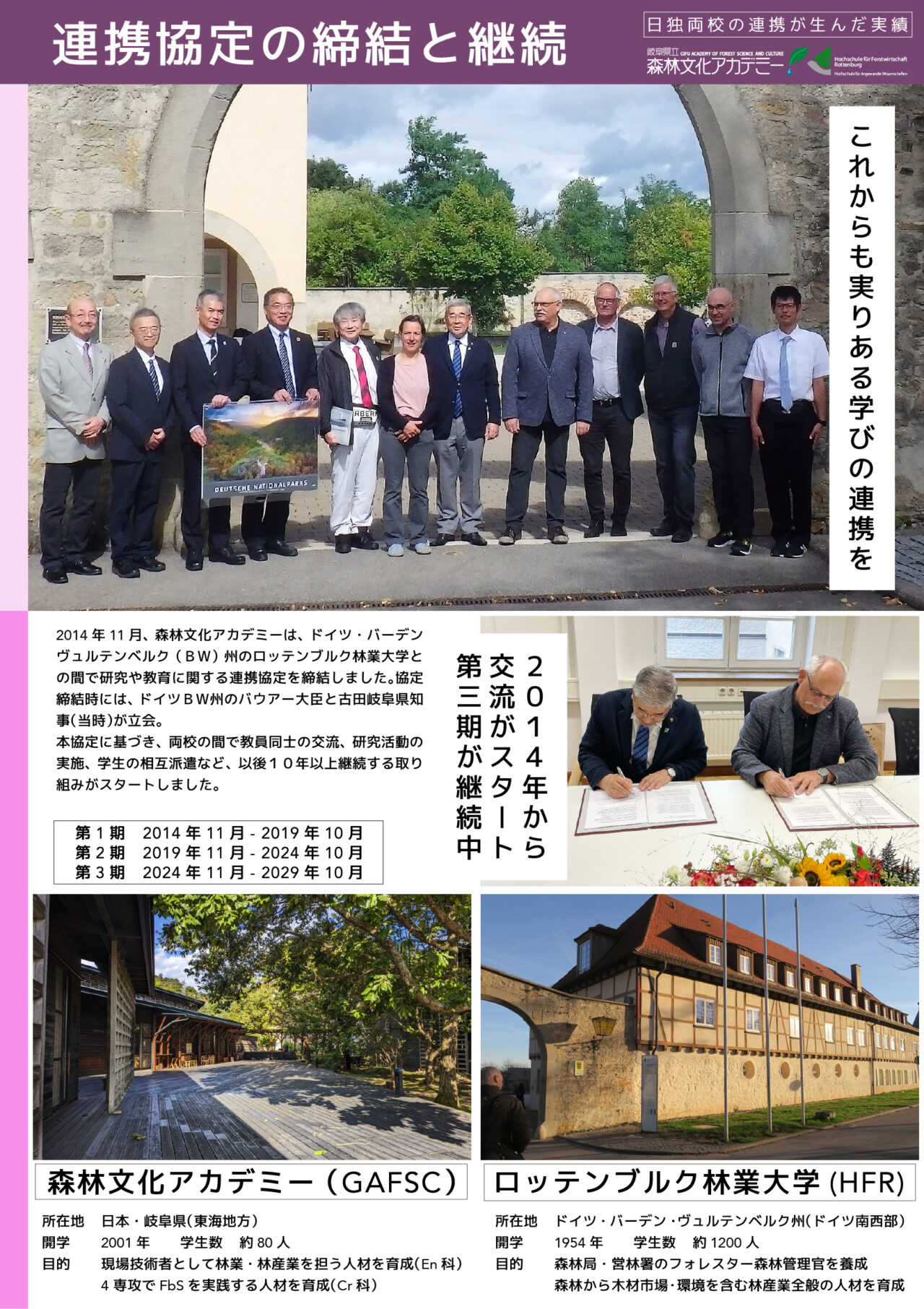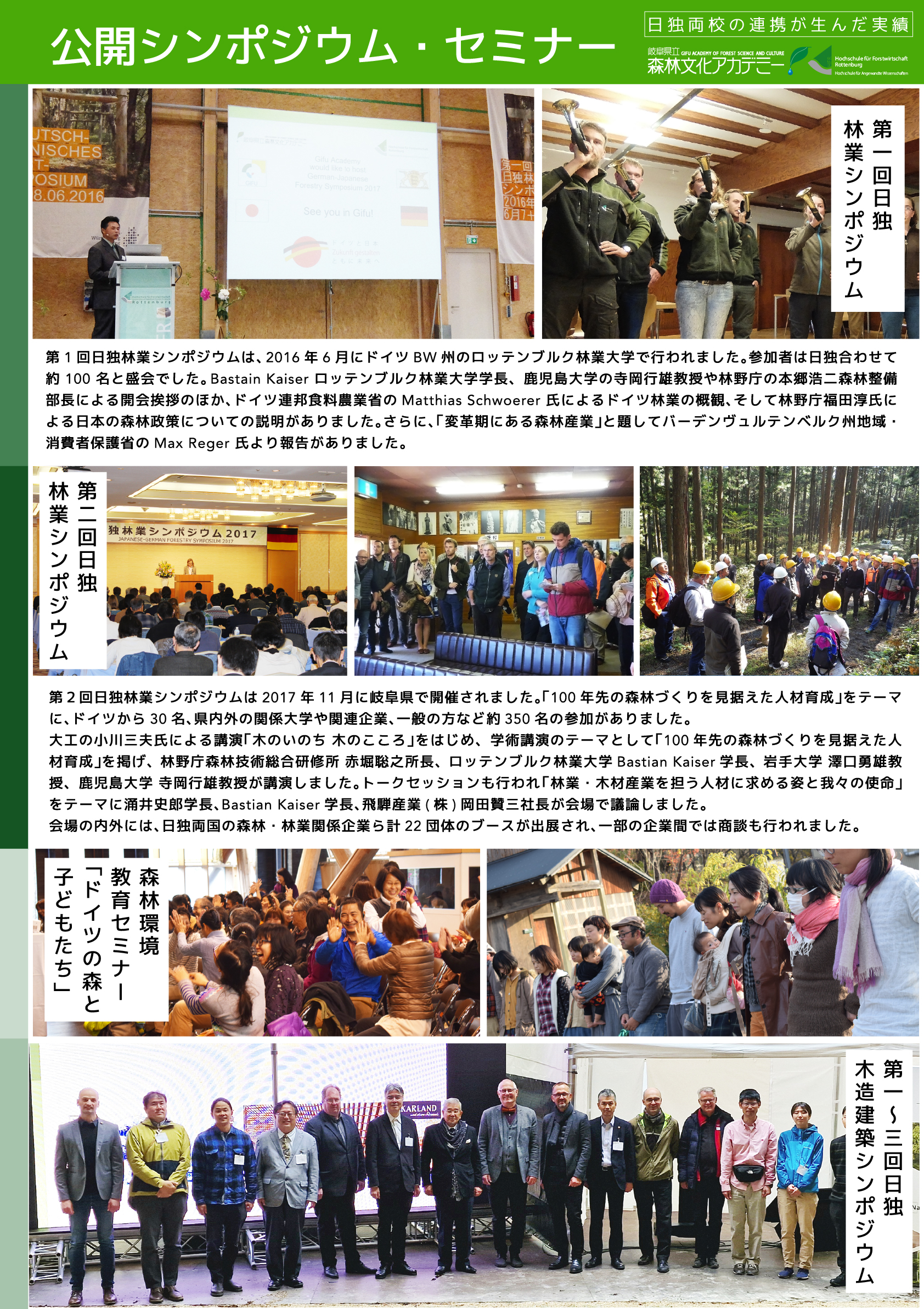 森林文化アカデミーとロッテンブルク林業大学は、10年間の連携によって、広範囲にわたる様々な成果を得ることができました。 主要な成果をポスターにまとめましたので、どうぞご覧ください。(PDF:28.3MB)
