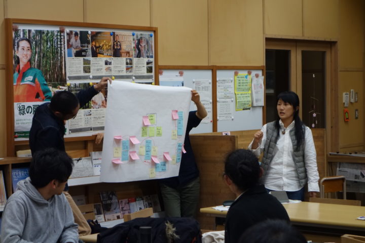 「会員制シェアオフィスin森の中」(=森林環境を活かしたシェアオフィスビジネスの提案)や、「オシャレに森を楽しみたい」(=事前の準備やめんどくささを無くして気軽に森に入れるシステムの提案)など、学生ならではの意見がありました。