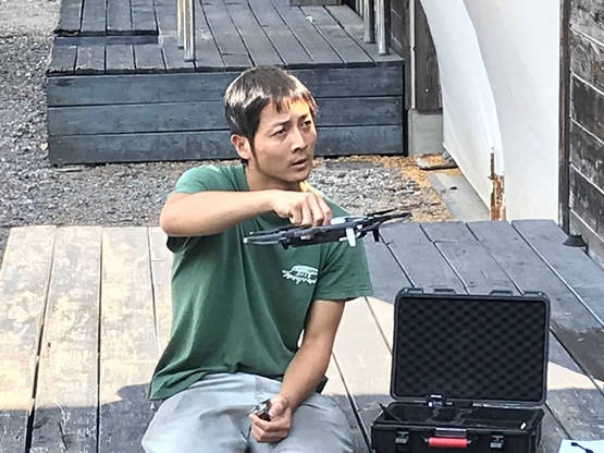 ドローンの紹介をしていただきました。DJI製のMavic Airを実際にフライトしてみました。また、自動操縦もしてみました。