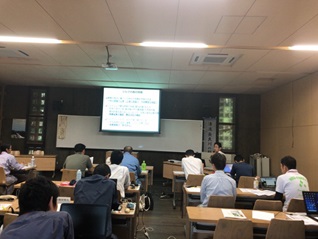 本研修では、会場である森林文化アカデミーの演習林からデータを収集し、そのデータを基に将来を見据えた施業計画を立て、さらに、将来の山の状況を所有者に提案することをカリキュラムの一つとしています。前回の研修では、演習林で毎木調査を行い、データを収集しましたが、今回の研修では、そのデータから、将来の山の状況を予測分析する内容でした。