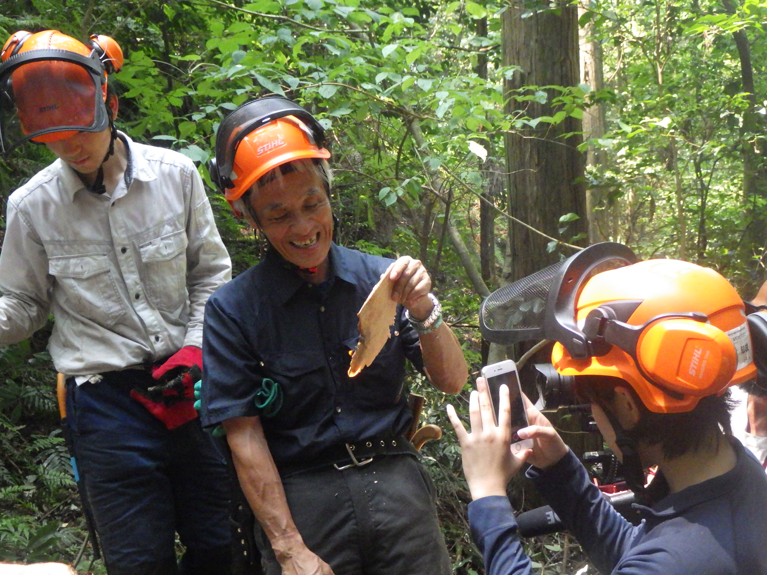 また、伐倒時に起こる芯抜けや根元が裂けないよう「芯切り」や「オノ目(ヨキ目)」を入れることで、材の品質を確保する細工も実践し、その技能も身に着けました。