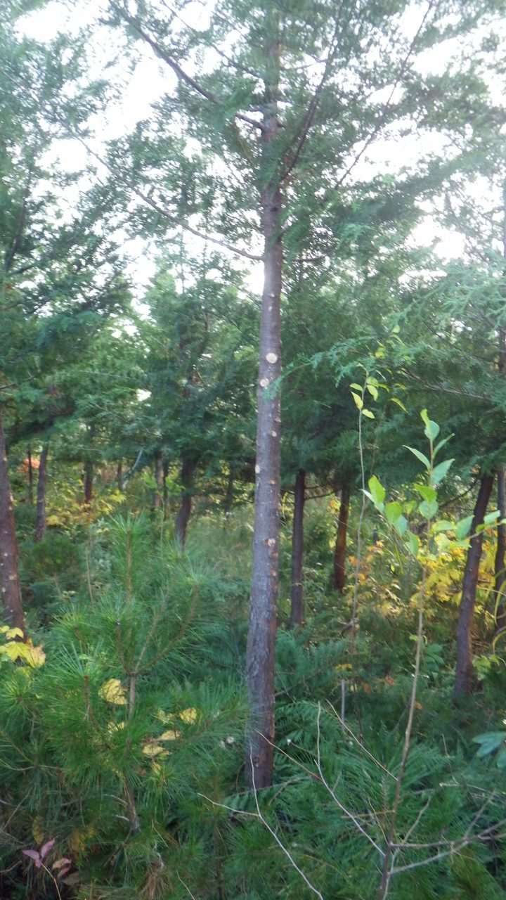 指定した基準は、①欠点木以外は、全木3.5M打ち上げを目標とする。②成長の早い木は4.5Mまで打ち上げて良い。③形質の悪い木は枝打ち対象から除外する、でした。