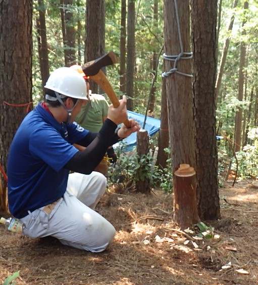 追い口はナバ先生がイギリスの環境教育で利用しているからと、購入してきた二人挽きの鋸です。見た目に反して、鋭い切れ味で、サクサク切れました。