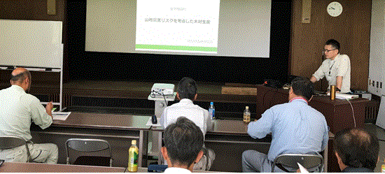 その中でも岐阜県は30度以上の急傾斜地が6割を占め、路網整備が厳しく、さらに、近年の異常気象を踏まえ常に災害の可能性を考えた路網開設を行う必要があることについて話がありました。