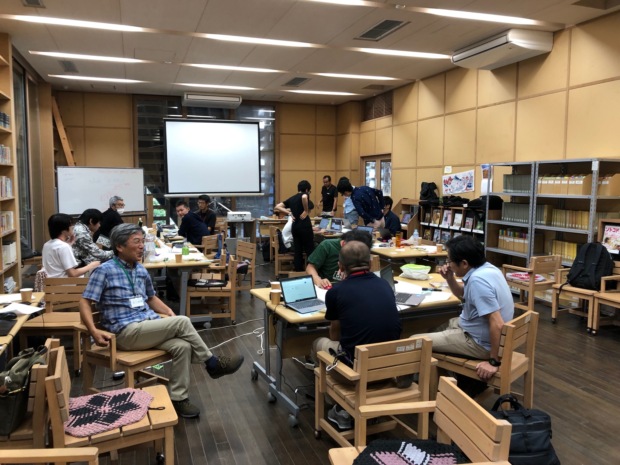 今回でアカデミーで4回目の開催となる林業×ハッカソン。今年のテーマは「森林管理」です。県や市町村の林業関係の職員、林業事業体の方、IT技術者の方が総勢23名集まり、2019林業×ハッカソンを行いました。
