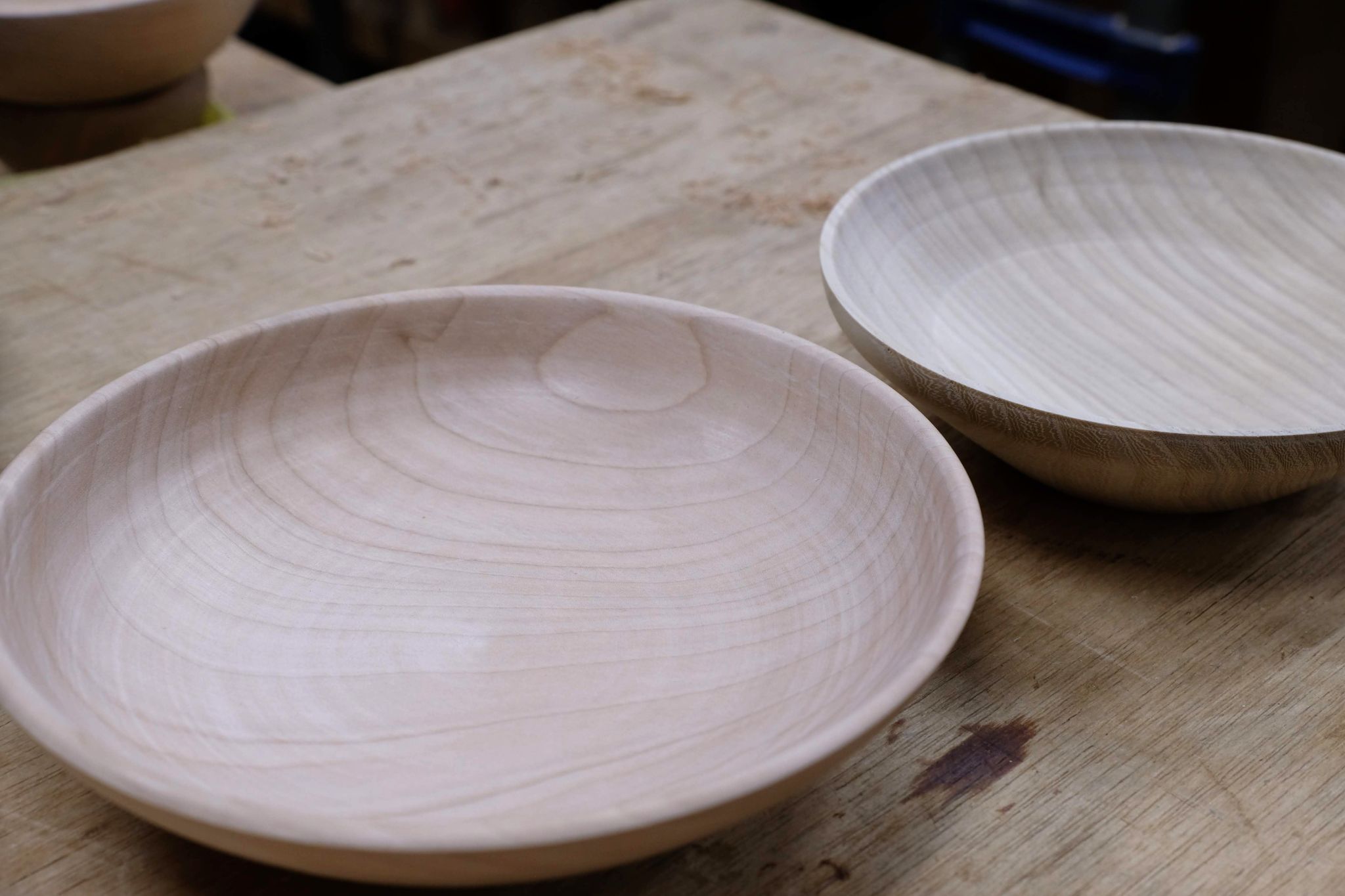 器の内側の挽目が少し残ってしまいましたが、初めての器が無事に完成しました。工房には、木工旋盤に使えるサイズで出た端材をストックしていますので、学生達には今後も練習に取り組んでいってもらいたいですね。木工旋盤の基礎2では、お椀づくりと平皿づくりに取り組む予定です。そちらも頑張りましょう!