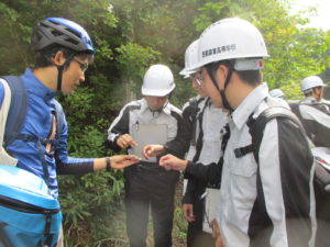ミツバアケビの果実があったので,味を楽しんでもらいました根ノ上高原の標高は900 m前後なので,生徒たちが普段生活している恵那市や中津川市の市街地よりも少し標高の高いところに位置しています。普段あまり目にしない樹木について,五感も使って理解を深めてもらうことができました。