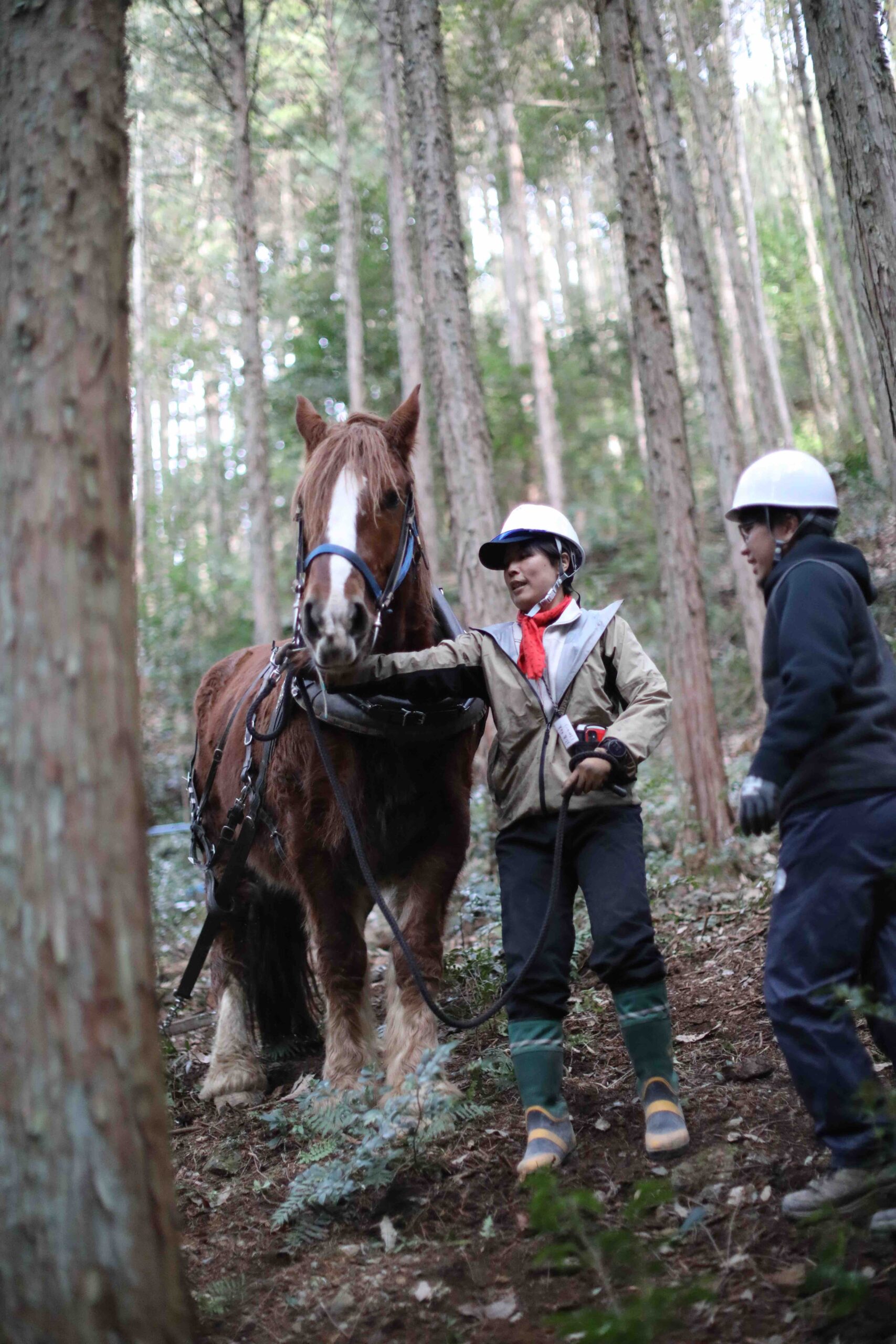 正直、馬はこれからの時代に必要な「古くて新しい」存在だと改めて感じています。林業の面からしても、道がつけにくく規模も小さい山で、持続可能に林業をしていくには、馬搬ほど優れたものはありません。時間もコストもほとんどかからない上、山へのインパクトも最小限で済みます。「本当に山の持続可能な利用のことを考えたら、最終的に馬になった」とは、岩手県遠野地域の山の古老たちから馬搬の技術を継承した今回の講師岩間さんの言葉。