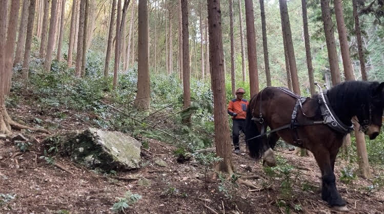 機械と異なり、化石燃料に頼らず、大量の二酸化炭素も排出せず、草だけをエネルギーに働く馬は、まさに「アニマル・カーボン・オフセット」ですね。そんな林業があっても良いかもしれませんね。