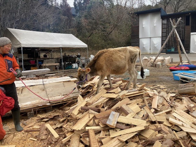 長野から来てくれた牛のフユちゃんも、引き牛で歩く練習をしました。