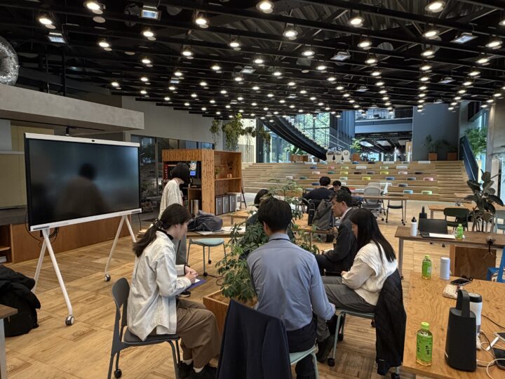 会場は、江東区にある清水建設の共創施設「NOVARE」。雑多なアカデミーの教室とは対照的に、イノベーションを生み出す仕掛けが随所に施された、洗練された空間です。
