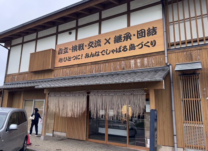 町の玄関口「きんにゃもんにゃセンター」に掲げられた看板。一見父性的にみえる海士町だが、実は母性的な島だった