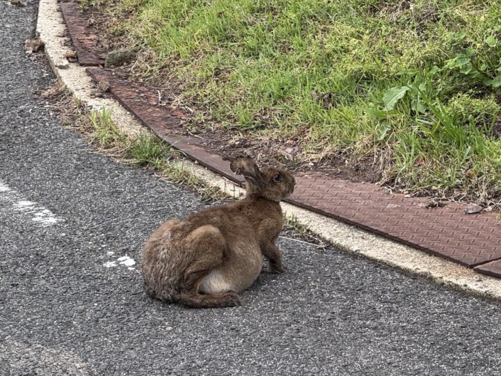 西ノ島で出会った隠岐固有亜種の「オキノウサギ」。