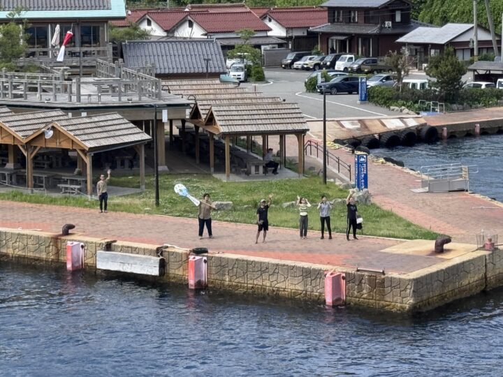 本土に向かう船に力いっぱい手を振って見送る海士町のみなさん