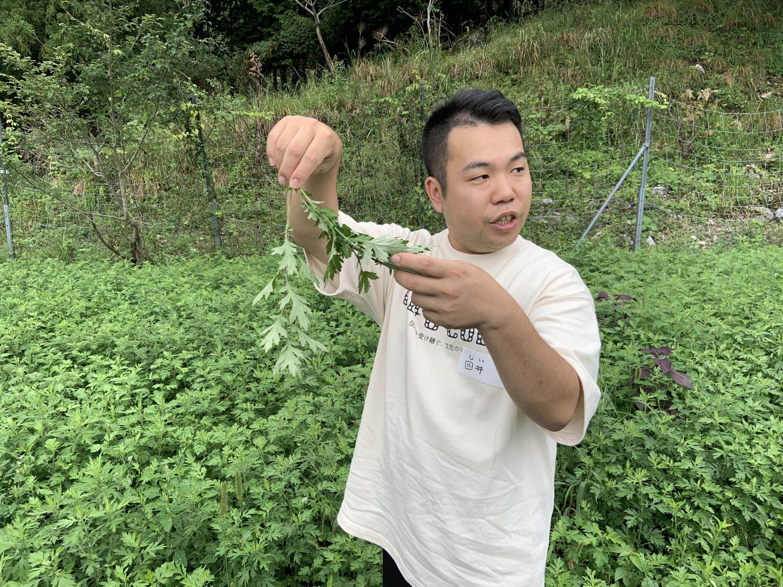 現地では、実際に薬草を育てているところを見せていただきました。実際に栽培地に入っても、どれが薬草かわかりません。