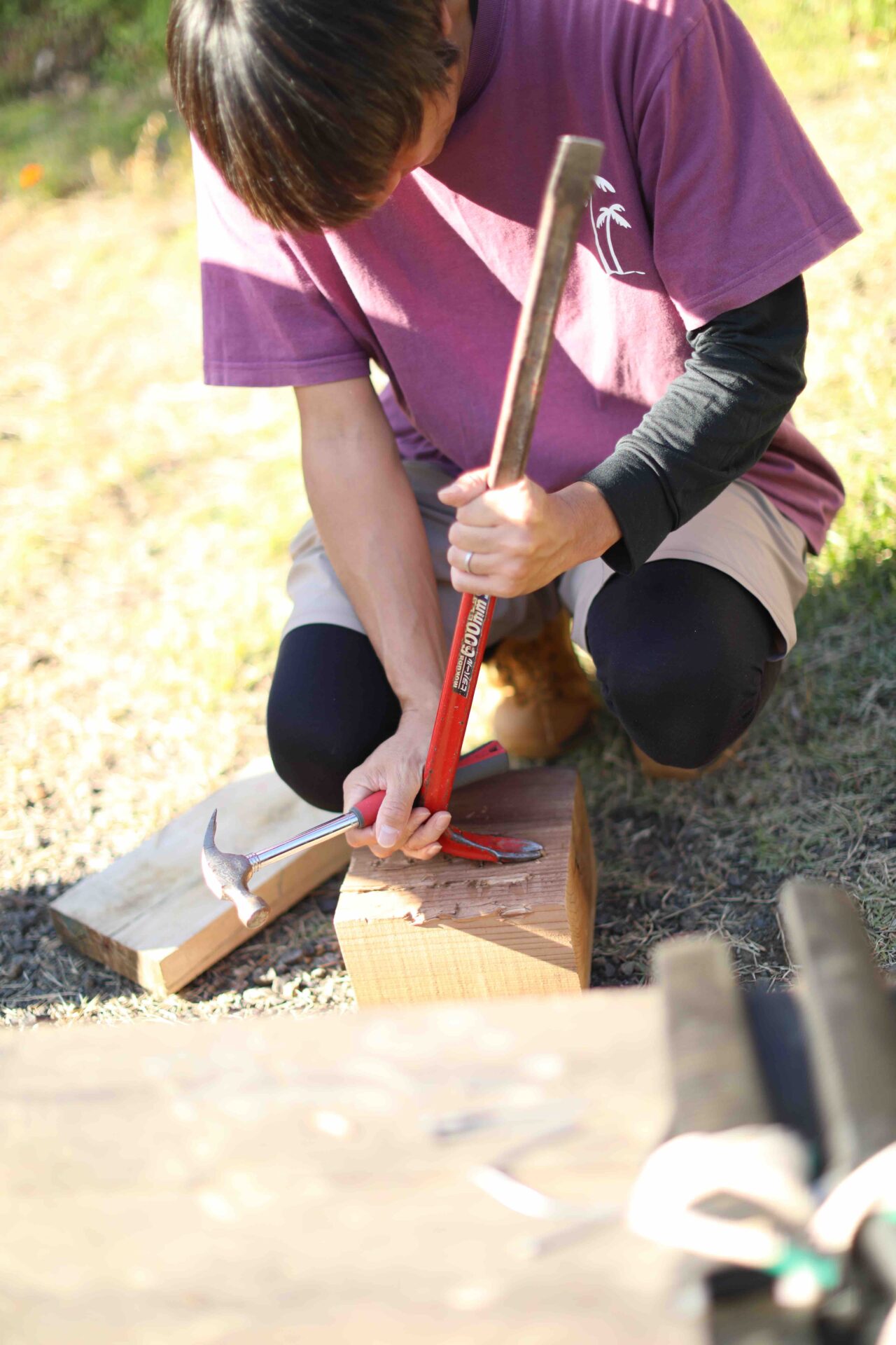 実はこの「釘を抜く」という作業には訳があるんです。Antjeさんのユースファームでは、釘はタダでは手に入りません。集められた廃材から3本釘を抜くか、焚き火の中にある焼けた釘を5本集めると、新しいクギが1本もらえるそうです。 そうすることで、自由と責任、社会や経済とのつながり、遊び場を自分たちで維持していくという意識や所属意識が醸成されるとともに、クギを踏み抜いたりしないよう遊び場のリスクマネジメントもできているんです。すぐにでも真似をしたい仕組みですね。