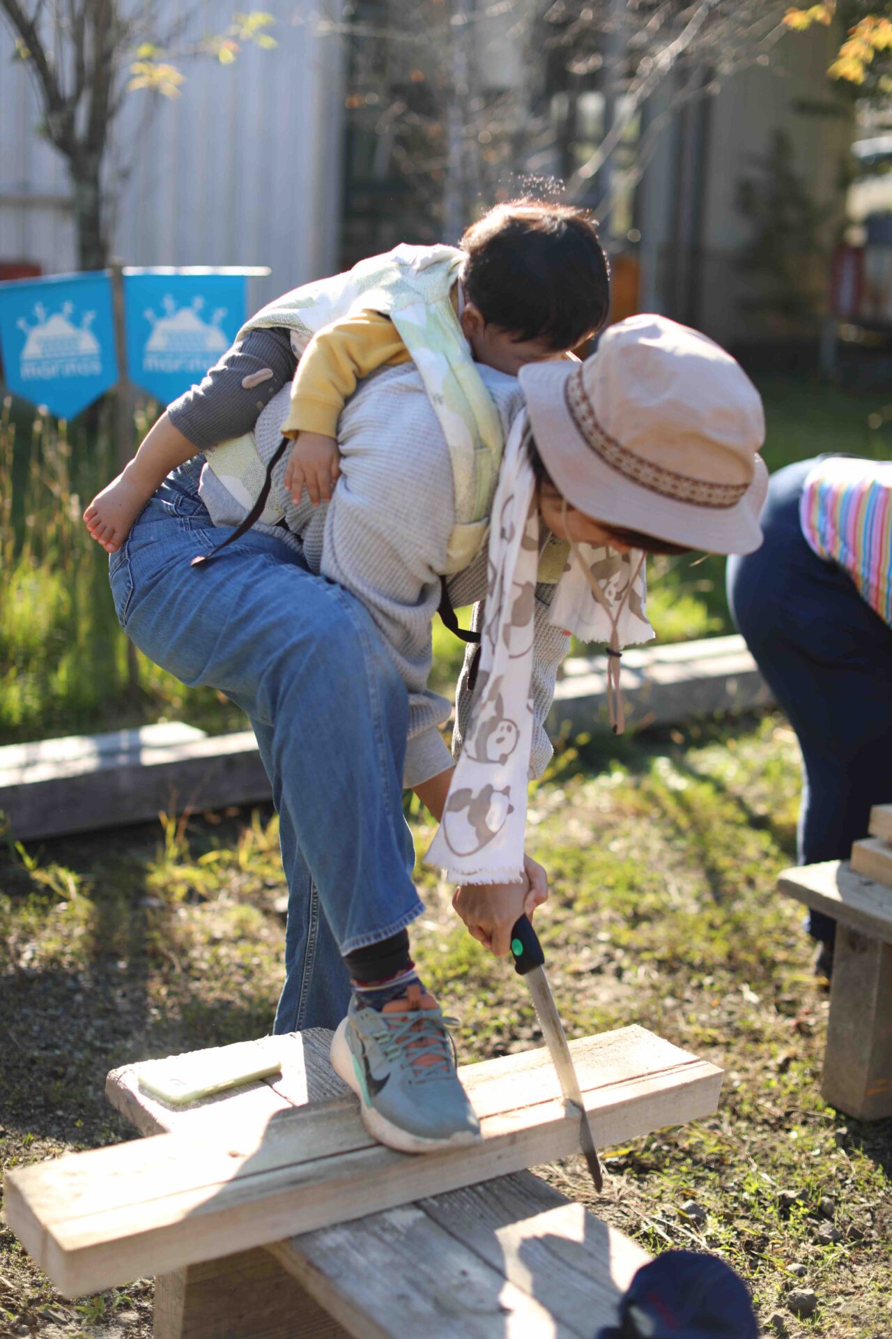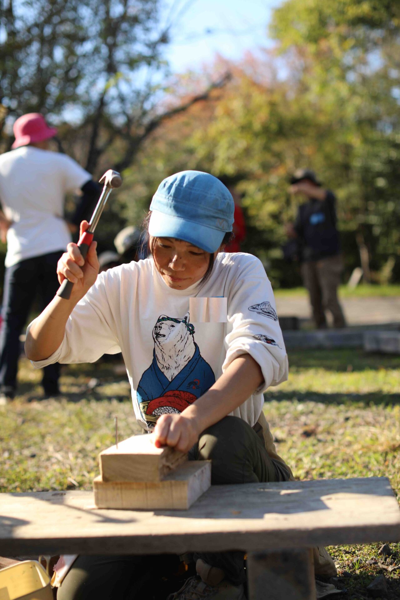 長さの違う釘を5本打ったり、それらを全部キレイに抜いたり、角材を指定の時間内でのこぎりで切ったりと、なかなかハードな内容にみんな大興奮!お互いにフォローし合いながら、皆さん無事終了証をAntjeさんからもらってました。