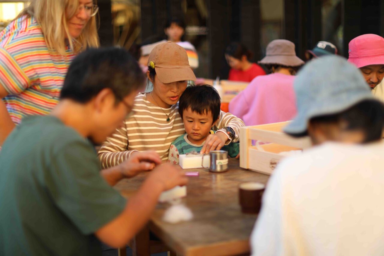 クッキーの型に羊毛を入れ、スポンジの上で専用の針を使ってチクチク指し続け、羊毛どうしを絡めていくワークなんですが、これまたはじめるとみんなどっぷりと自分の世界に入ったり、あるいは慣れてくると作業しながら楽しそうにおしゃべりしたり。。。近年なかなか見ない光景を眺めながら、暮らしや手仕事の重要性を改めて感じた午後でした。