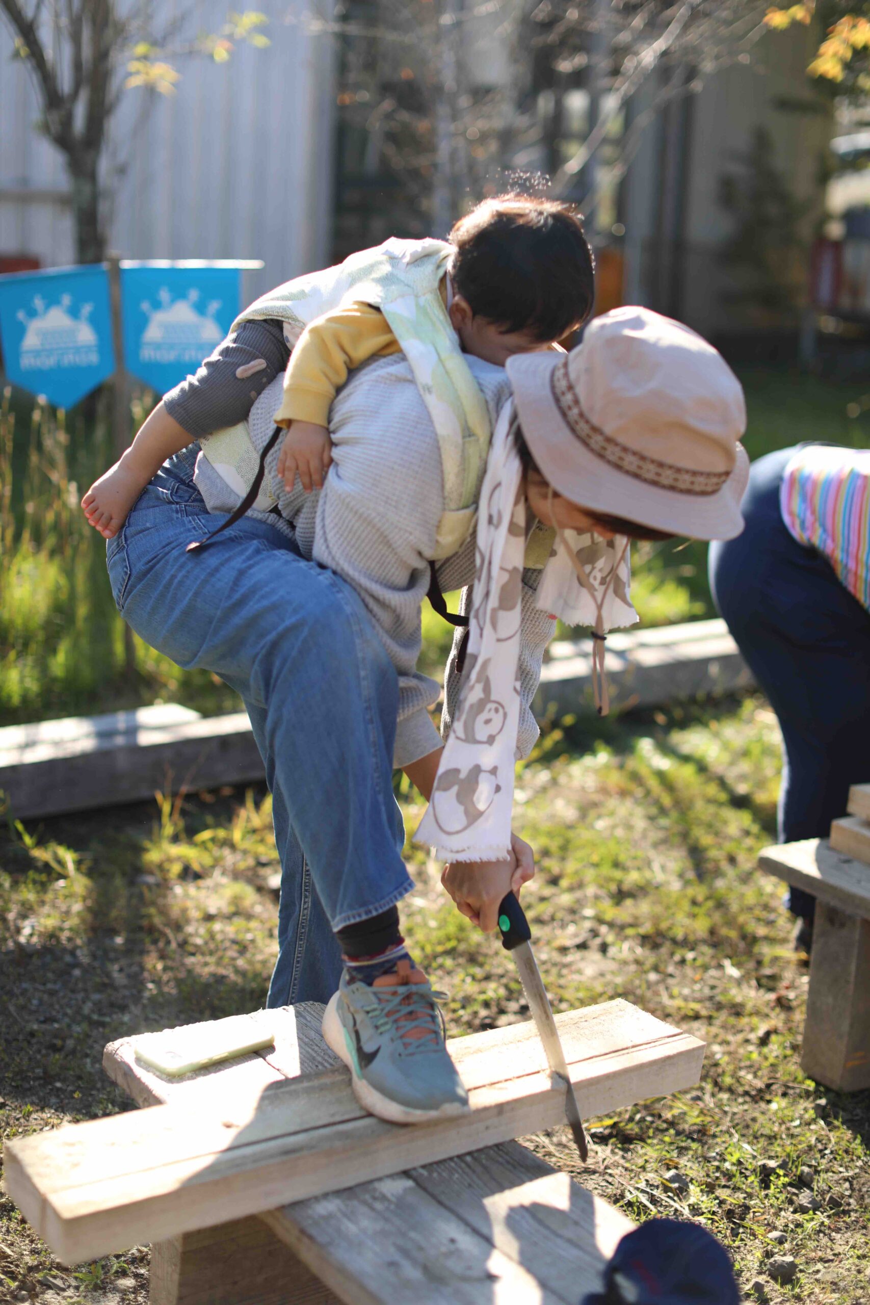 長さの違う釘を5本打ったり、それらを全部キレイに抜いたり、角材を指定の時間内でのこぎりで切ったりと、なかなかハードな内容にみんな大興奮!お互いにフォローし合いながら、皆さん無事終了証をAntjeさんからもらってました。