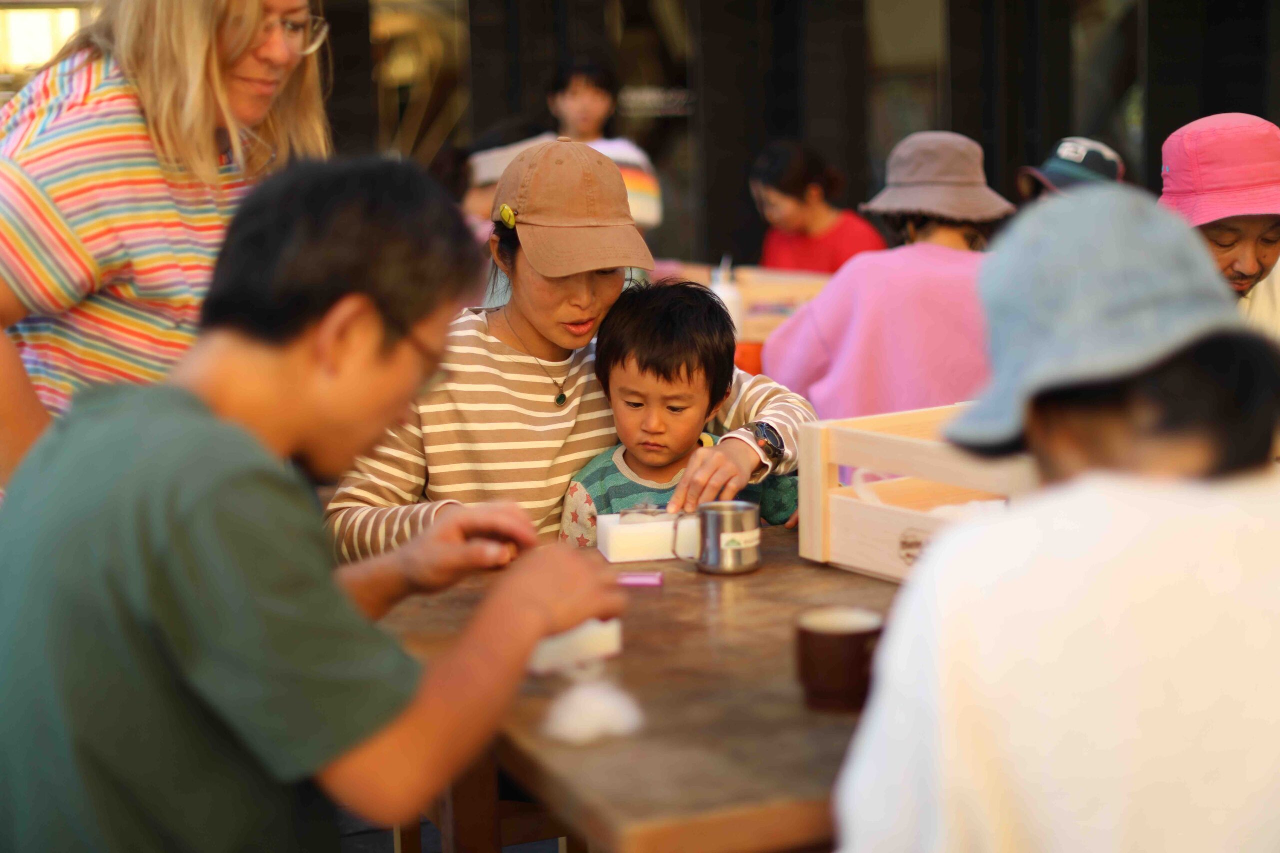 クッキーの型に羊毛を入れ、スポンジの上で専用の針を使ってチクチク指し続け、羊毛どうしを絡めていくワークなんですが、これまたはじめるとみんなどっぷりと自分の世界に入ったり、あるいは慣れてくると作業しながら楽しそうにおしゃべりしたり。。。近年なかなか見ない光景を眺めながら、暮らしや手仕事の重要性を改めて感じた午後でした。