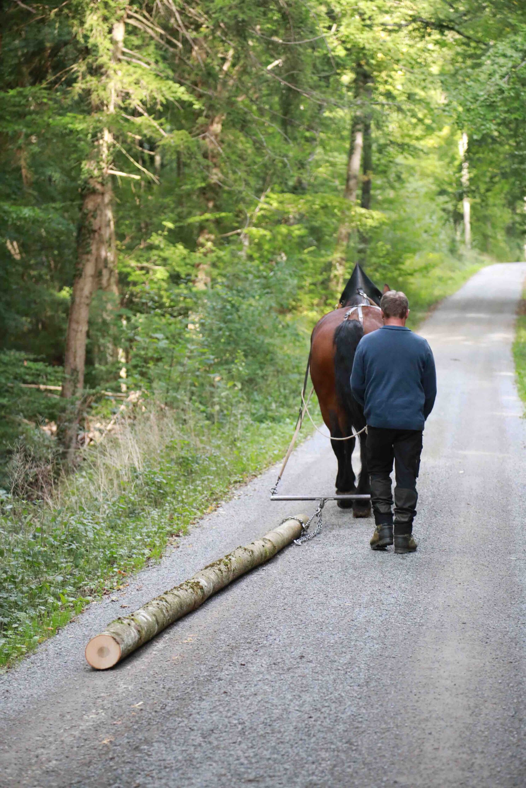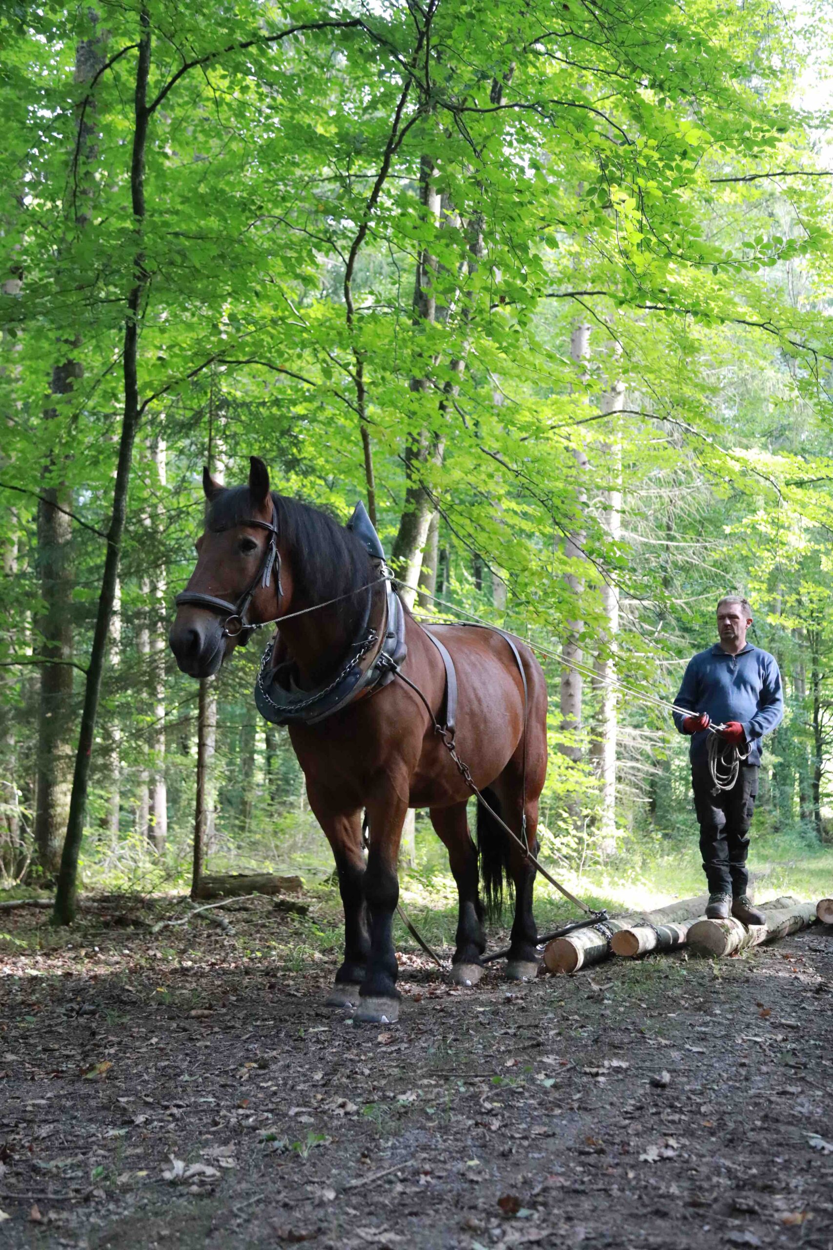 の森林局では、機械化された林業と並行して、昔ながらの馬搬による林業も展開しています。