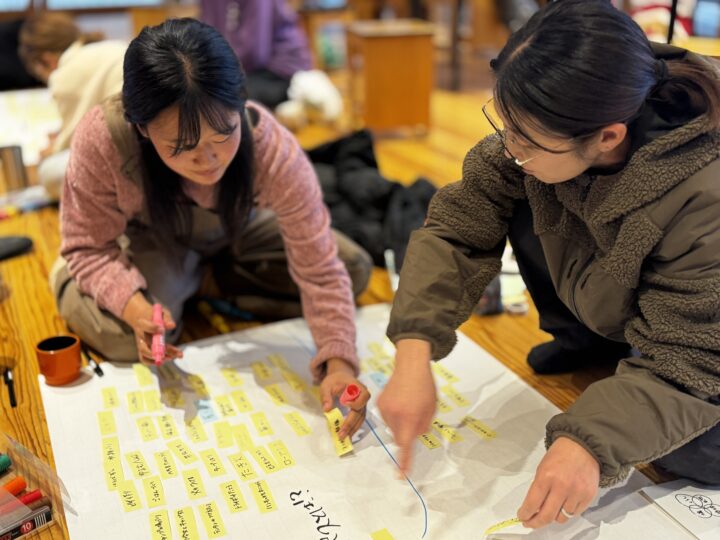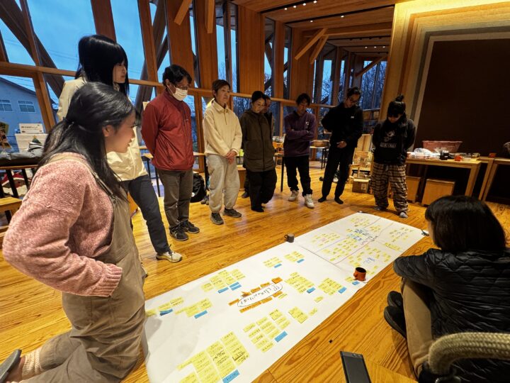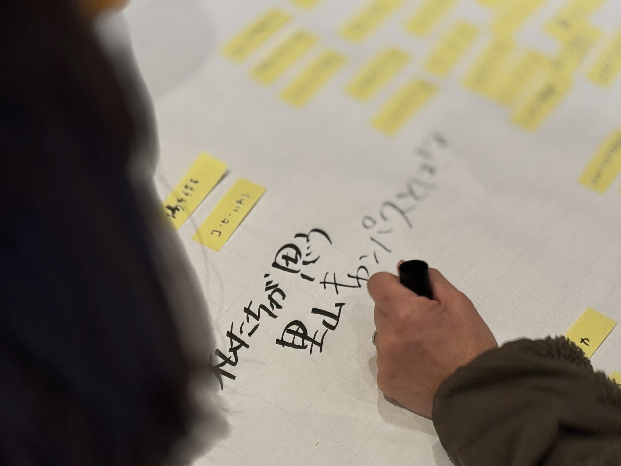 同じ手法で、今年やったことを書き出し、それぞれ何を学んだか、どんな学びがあったのかをディスカッションしながら、文字にしていきました。1年生、2年生、そして科目履修生と、経験や目的が違う人々が、同じ体験からどんな学びがあったのかを互いに気づき合う、深い学びの時間になりました。