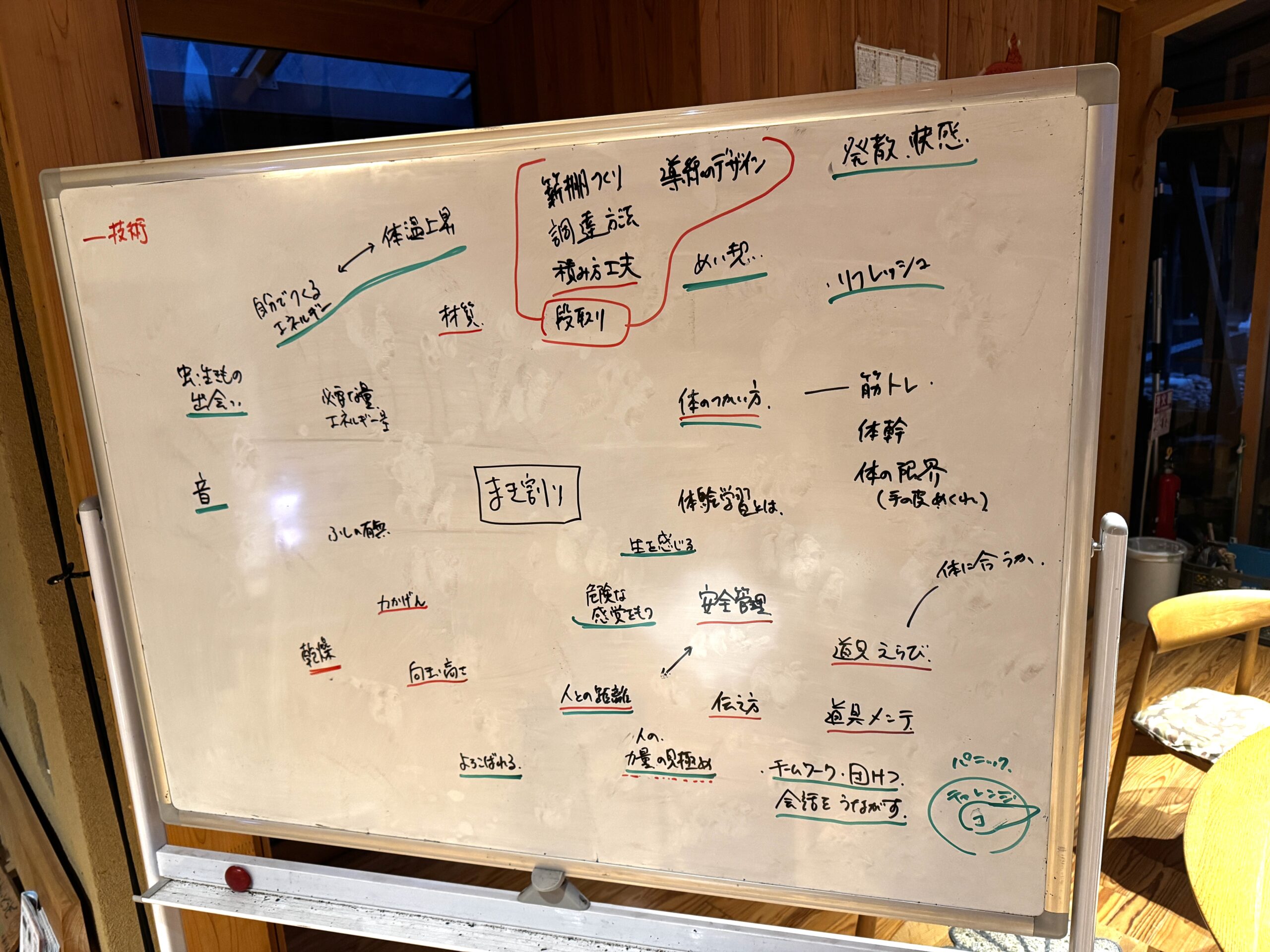 例として「薪割り」を学生同士でふりかえってみると、そこから30以上の学びが導かれていることに気づかされます。