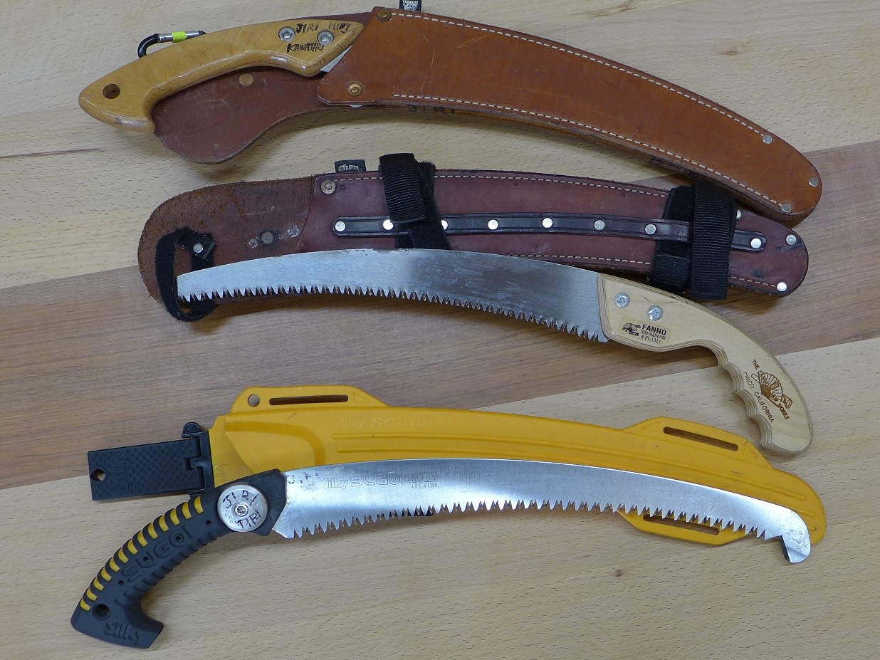 但し、太い丸太を伐ったり、樹木医として治療の時に樹上で利用する手鋸は、いわゆる「カーブ・ソー」を使います。