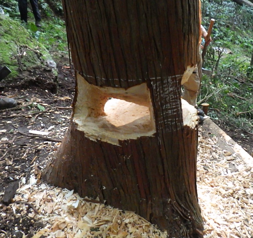 与岐を入れる下面の幹周は153cmでしたが、今回はツル幅を12cmにして斧を入れることにしました。