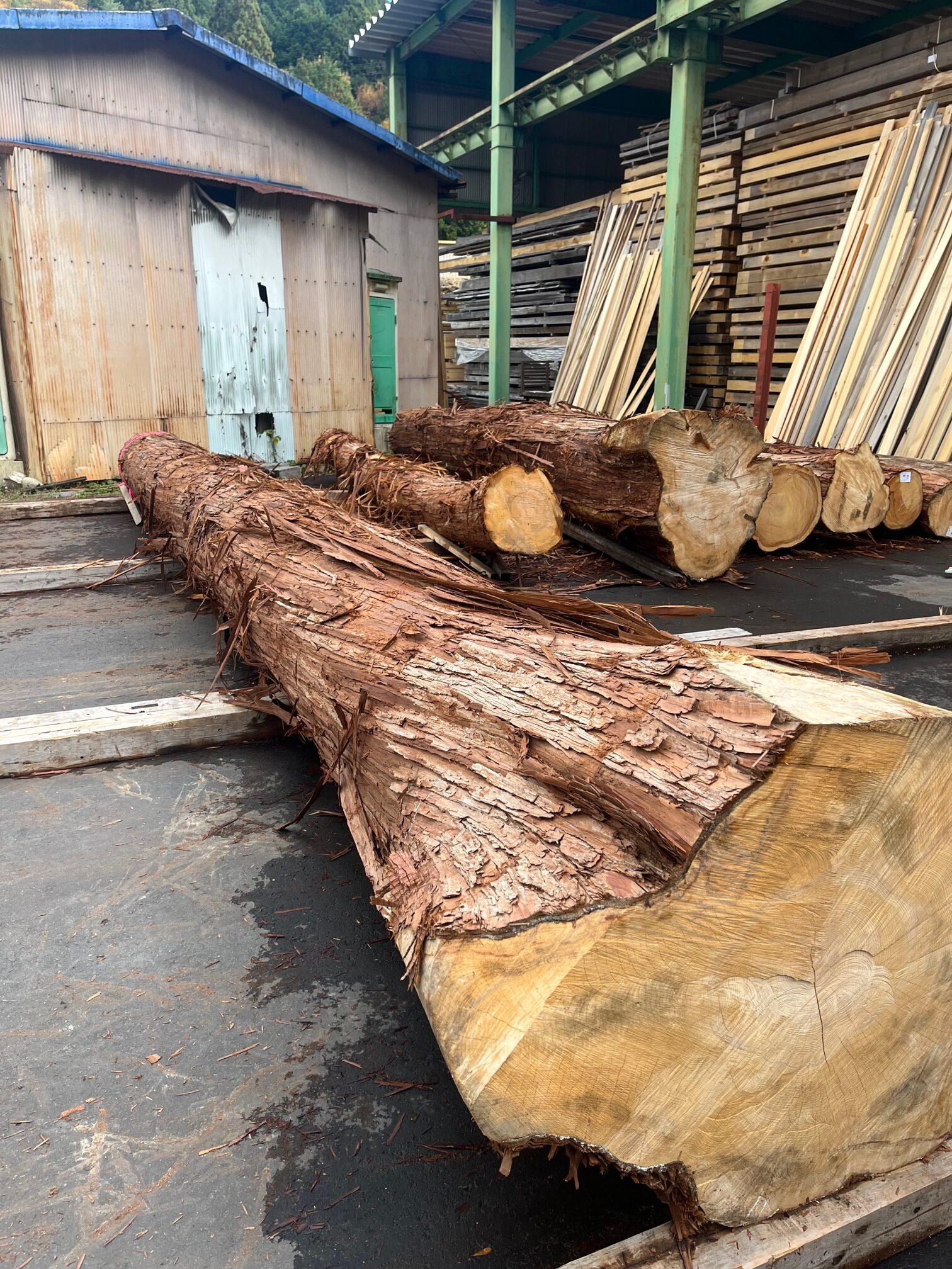 買い付けた原木も見せて頂きました。買い付けた原木をいかに上手に木取りをして、