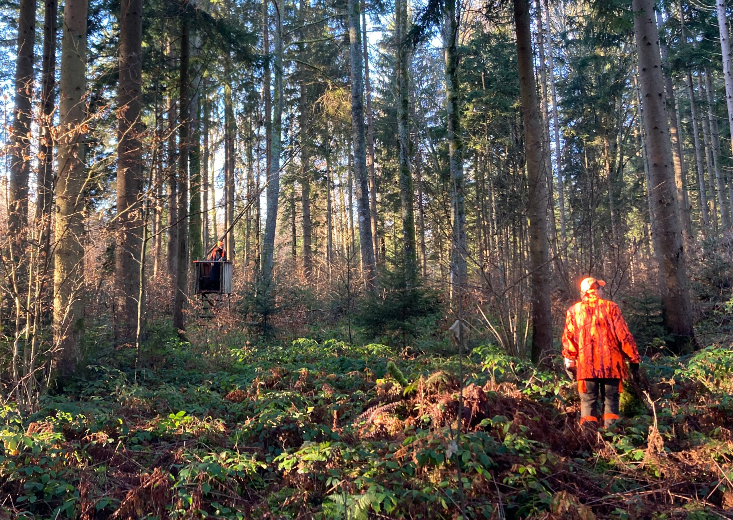 森林官の事務所と解体処理施設が併設しているなんて、非常にユニークな場所だな!と思いましたが、実は森林官の事務所は解体処理施設を有しているそうです。ここにもドイツの森林と野生動物の関係性を感じますね。また、巻き狩りでは開始する前にバイムグラーベン先生がハイシートにスタンバイするやいなや「今回は難しそうだな」と呟いていた通りになりました。大切なのは目的を明確にし、その為に何を行うのか?という事前の準備や段取りが大切だということを考えさせられました。