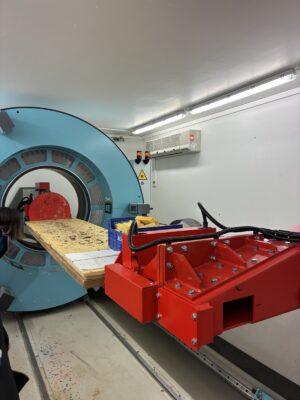 林業試験場にあるCTスキャナ、今回の見学のために稼働いただきました