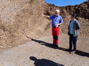 午後に見学したチップ加工の工場では、前日に訪問した製材所と同様に、生産した熱エネルギーを地域の家庭に供給していました。家庭だけではなく、市の公共施設などにも供給しているという話を聞いてとても驚きました。ドイツでは地下のパイプラインによって各家庭に熱エネルギーが供給されており、冬の暖房などに利用されているのだとか。生活に欠かせないエネルギーを共有する仕組みに感動しました。