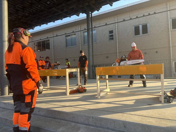 宮崎県日向市で開催された九州伐木チャンピオンシップに、教員の杉本他、エンジニア科2年生3名、1年生2名、クリエーター科2年生1名が参加しました。