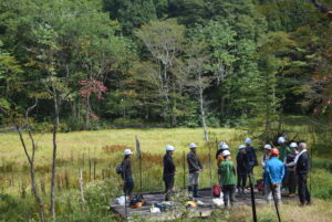 フィールドは郡上市の古川林業さんのにご協力いただき今回の実習を実施することが出来ました。この地域では10年前まではニホンジカの被害はなく、対策を行わなくても順調に育成していたそうですが、近年では対策をしなくては苗木が育たなく余計なコストがかかってしまうとの事でした。木材価格が低い水準にある中、余計なコストがかかることは林業にとっては死活問題です。
