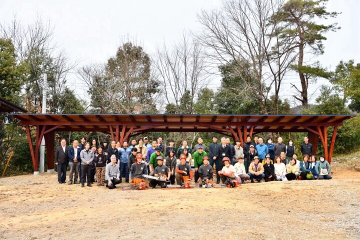 伐倒競技で「紡木人」に入魂!竣工式で完成祝う(自力建設2025)