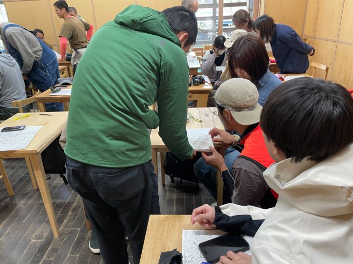 その後、教室で演習林の地図を広げ、尾根や谷といった地形の読み方を学びました。最初は少し難しそうにしていた学生たちも、3Dの地形模型を使ってみると理解がぐっと進みます。「尾根と谷ってこういうことか」と、目で見て手で感じながら、直感的に地形をつかんでいく様子が印象的でした。