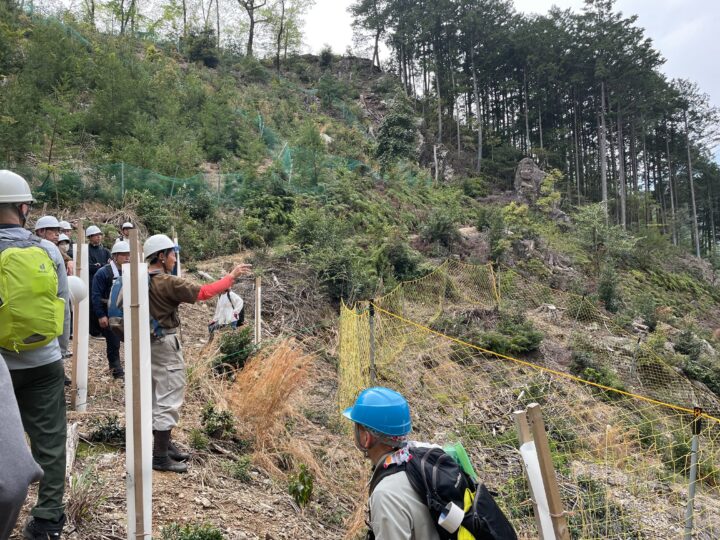 そのまま演習林の中へ入り、未来の森プロジェクトや自然共生サイトについての説明を受けます。森はただ木を育てる場所ではなく、生きものや環境との関係の中で大切に管理されていることを知りました。