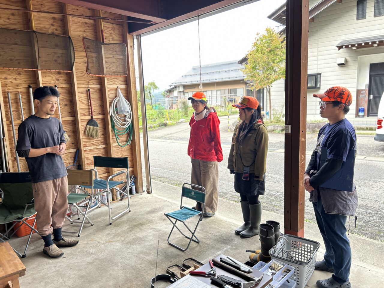 クリエーター科2年、林業専攻及び森林環境教育専攻で開催されている、「野生動物捕獲実習」。初回となる今回は、猟師だけでなく、木工作家や山ガイドなど、マルチに活躍されている水上淳平さん(Tabi・Factory@郡上市高鷲、アカデミーOB)のもとにお邪魔しました。