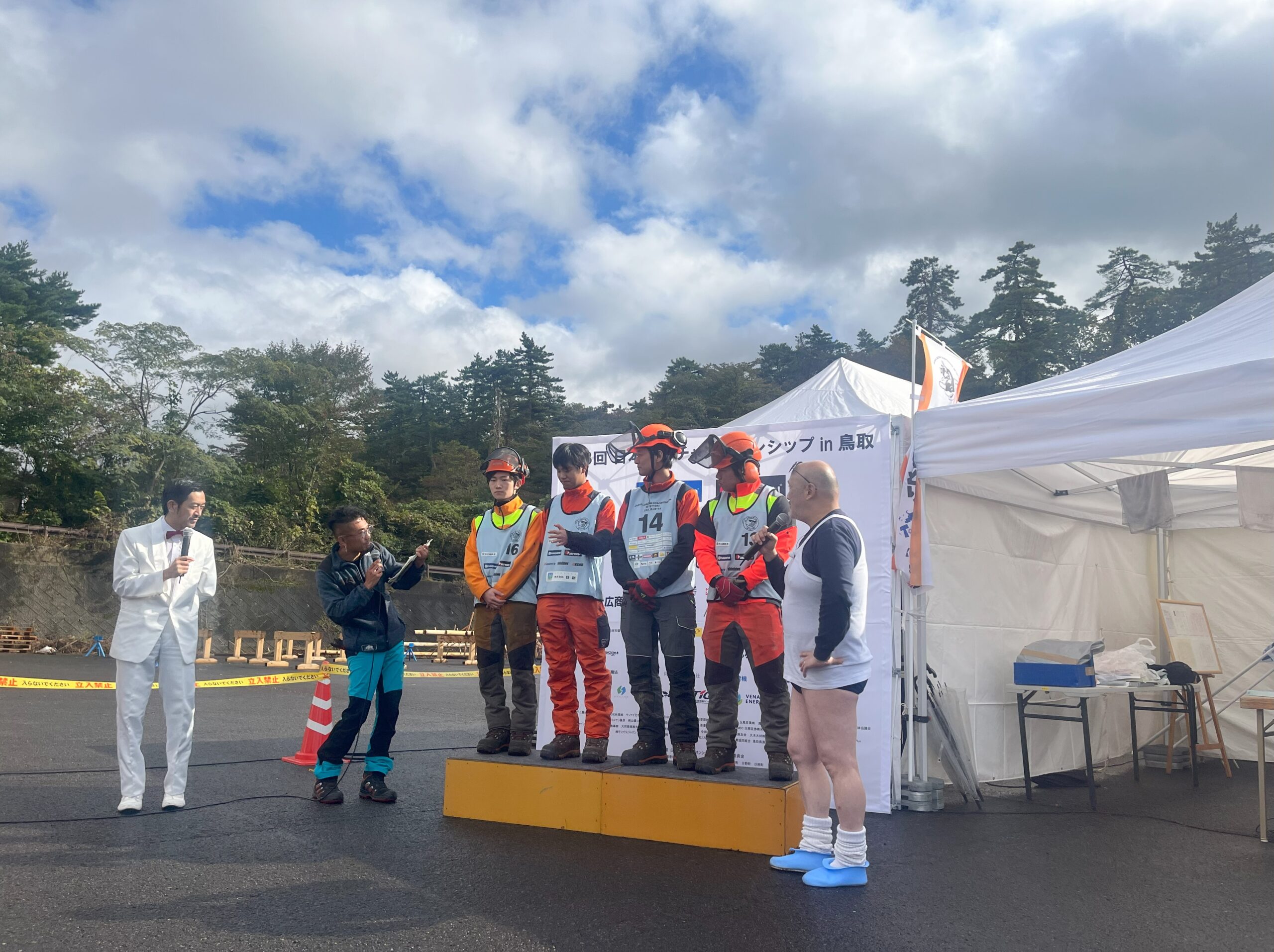結果が嬉しいのもさることながら、紅葉のシーズンが始まった大山の麓でチェンソー競技が出来たこと、一般の人も見にきてたくさんの人に盛り上げてもらいながら、戦うことが出来たことが、とても楽しい経験となりました。