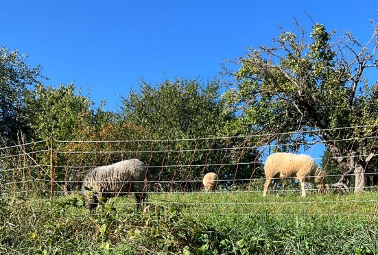 果樹園を保つための羊の放牧(囲いで必要な部分のみに行います)
