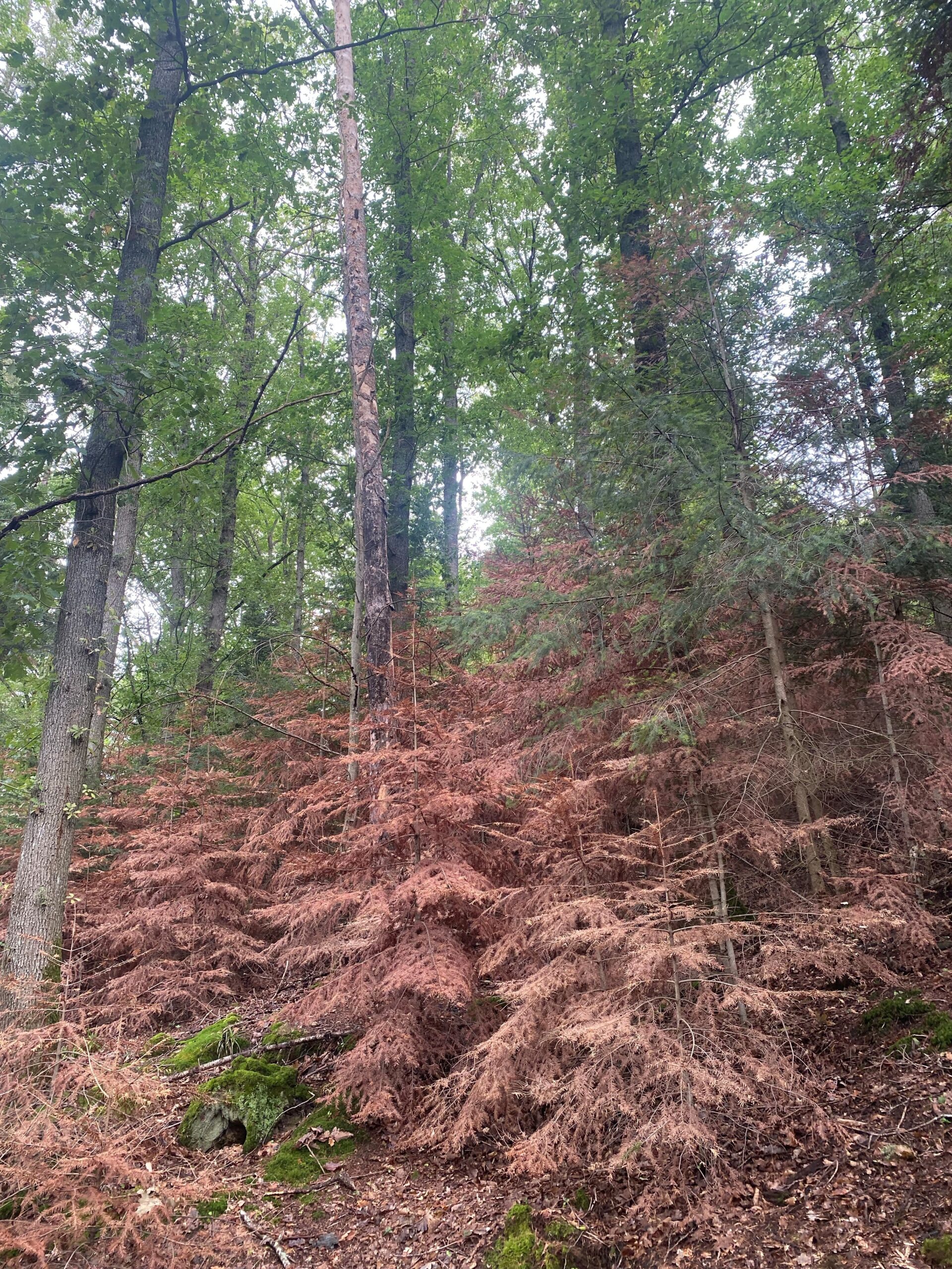 枯れているモミの稚樹