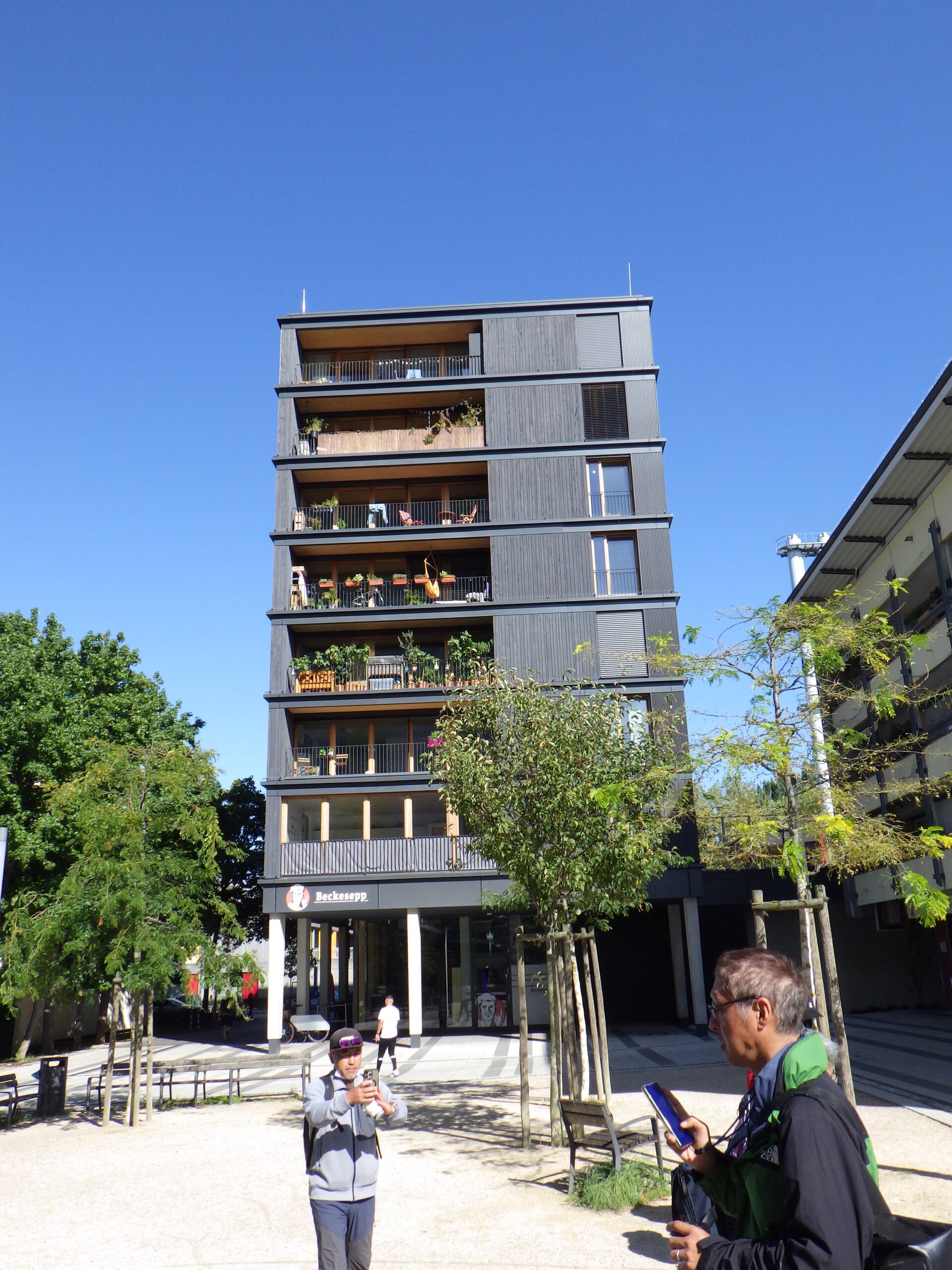 サマーセミナー6日目は、フライブルクにある木造建築ビル、環境先進開発都市の視察をしました。