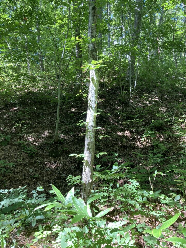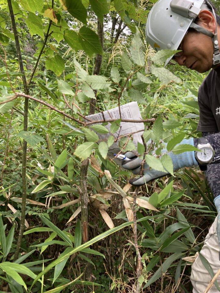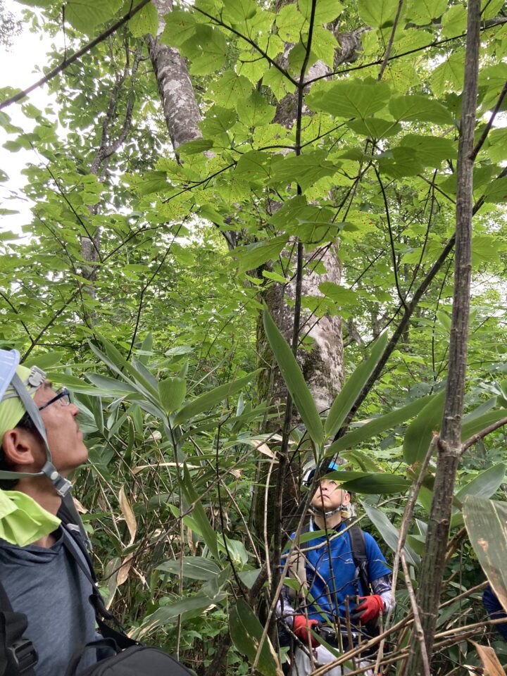 また、ブナの周辺にはウリハダカエデがたくさんありました。ナラ枯れを処理した後にできたギャップで更新が進んだようです。塩田先生によると、この状況は狙った結果ではないとのことでした。どんな樹種が天然更新をするのかを予測したり、見極めたりする難しさを知りました。