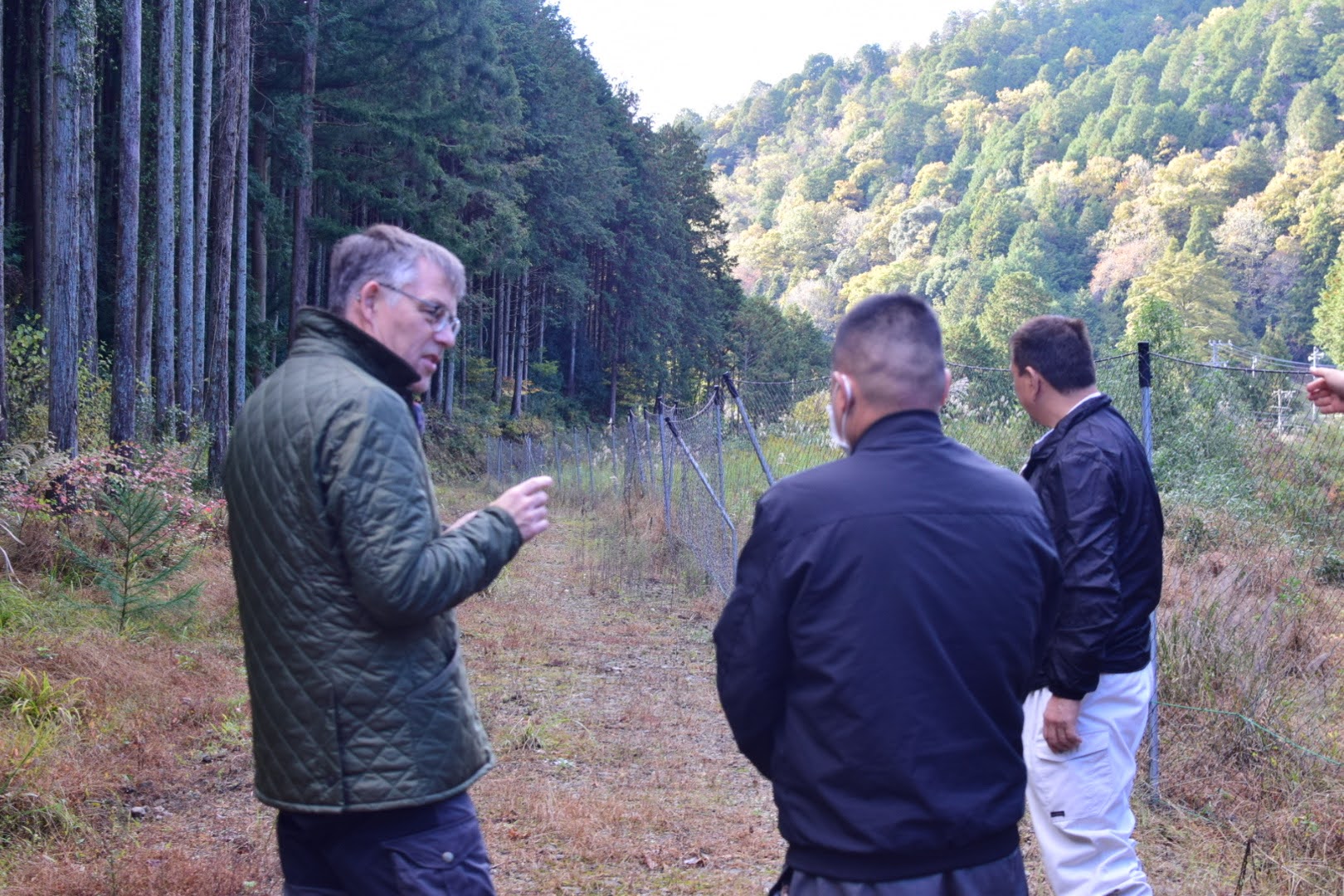 コンソーシアムの連携でドイツから獣害対策資材の試験設置を行っているエリアも視察しました。