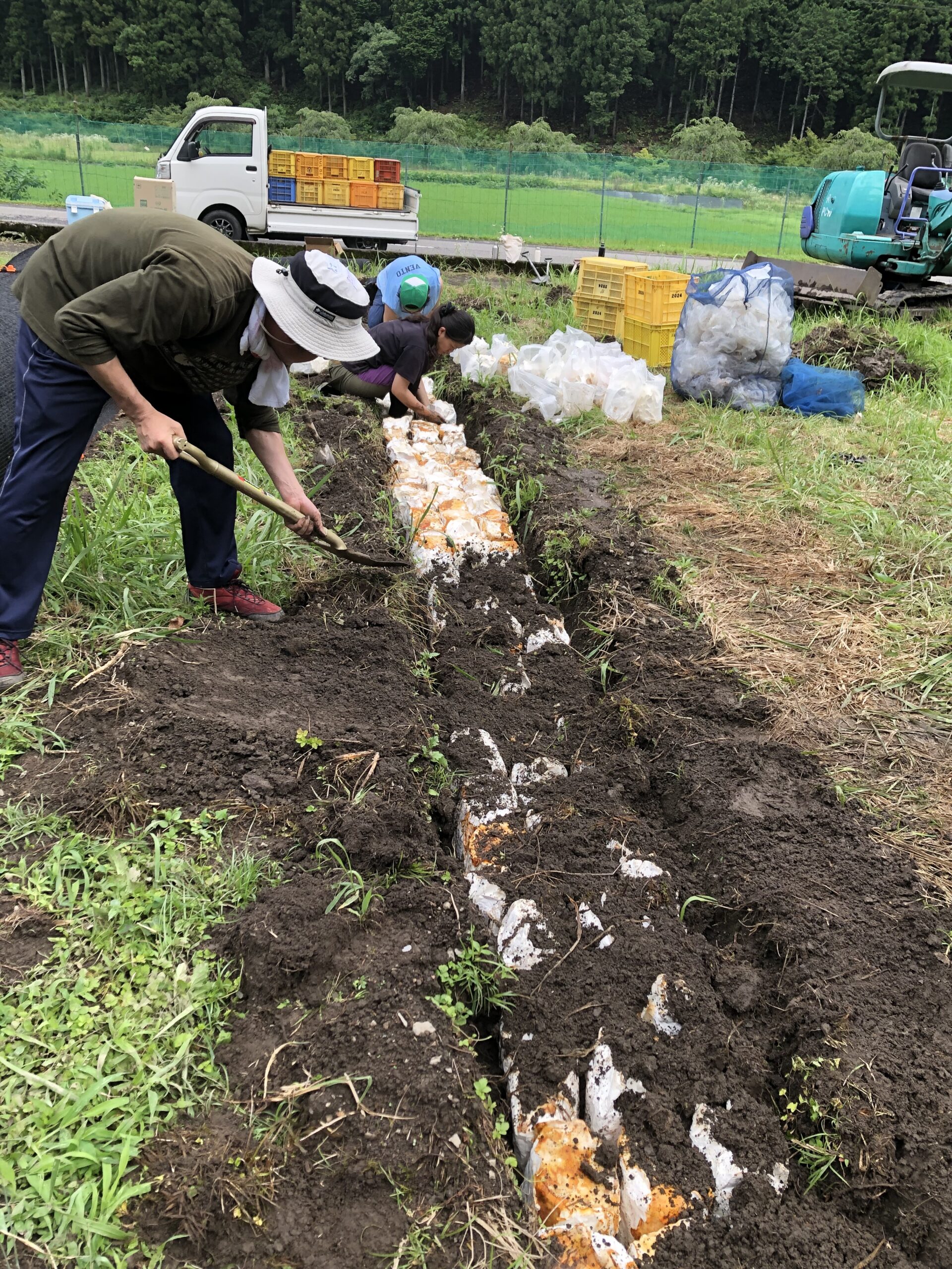 4ヶ月後、再び揖斐川町を訪れ、菌の回ったほだ木の伏せ込みを体験しました。