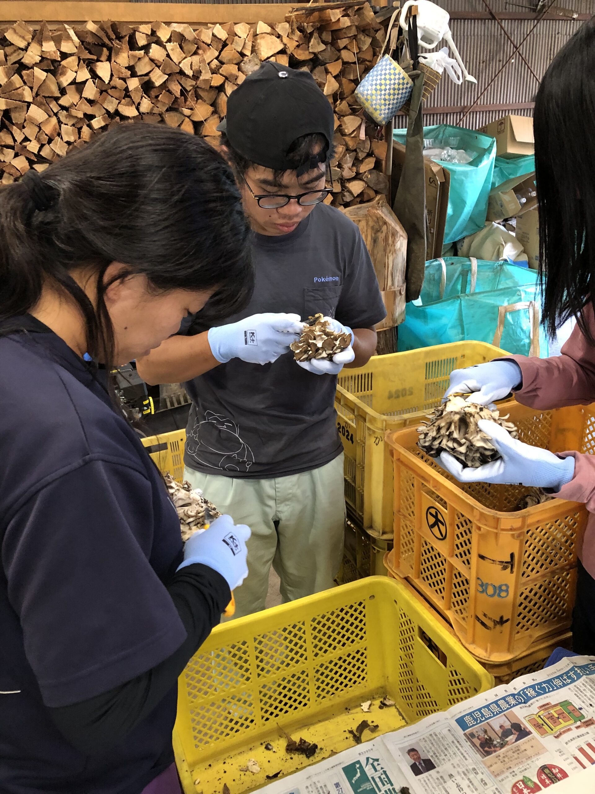 2月の実習では、煮沸、栽培袋つめ、マイタケ種菌の接種を体験させてもらいました。
