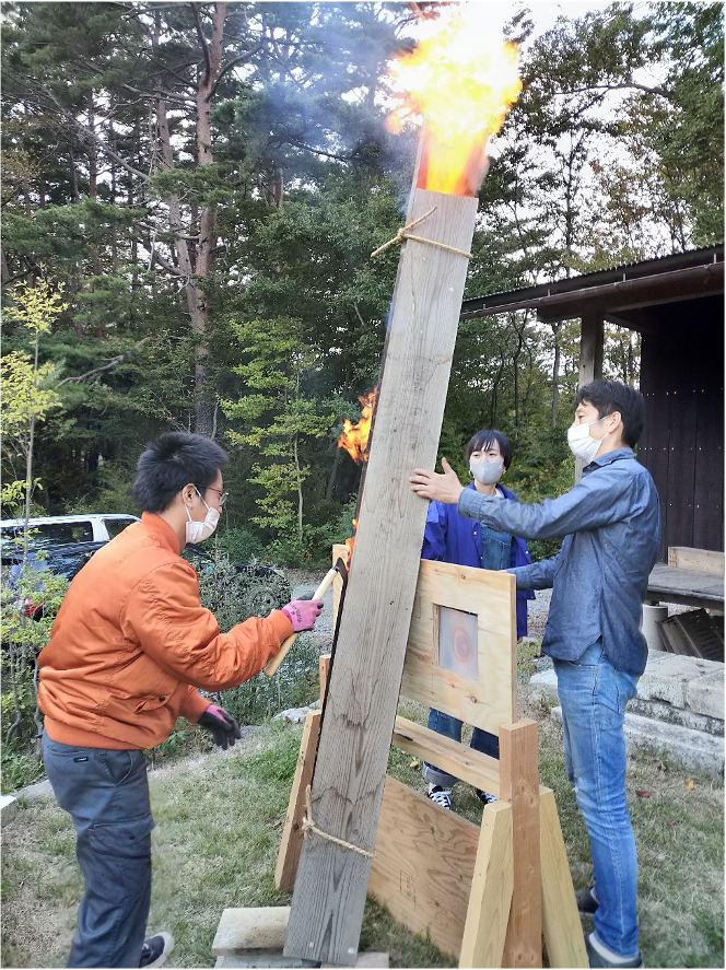 木造建築専攻では毎年「木造建築の防火」と題した授業があります。