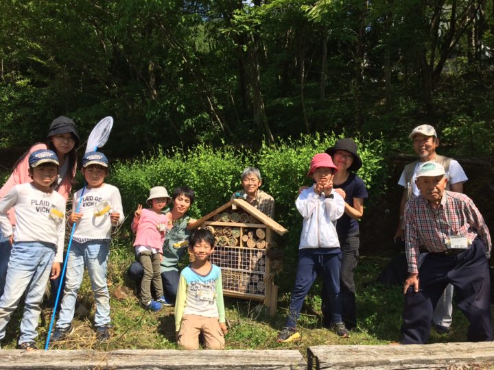 6/2(土)に岐阜・美濃生態系研究会さんとの連携でオープンカレッジ連続講座「虫の家をつくろう」の第1回目の講座を開催しました。この講座は昆虫のすみかを自分たちで作り、それを利用する昆虫達の観察を通して、人と自然環境の関わりについて新たな視点を得ることを目的とするものです。昨年までの講座ではササを短く伐って束ねた簡易な「虫の家」をつくっていましたが、今年はドイツでよく見られる小屋型のInsektenhotelを参加者と共に作り、アカデミーに設置することにしました。
