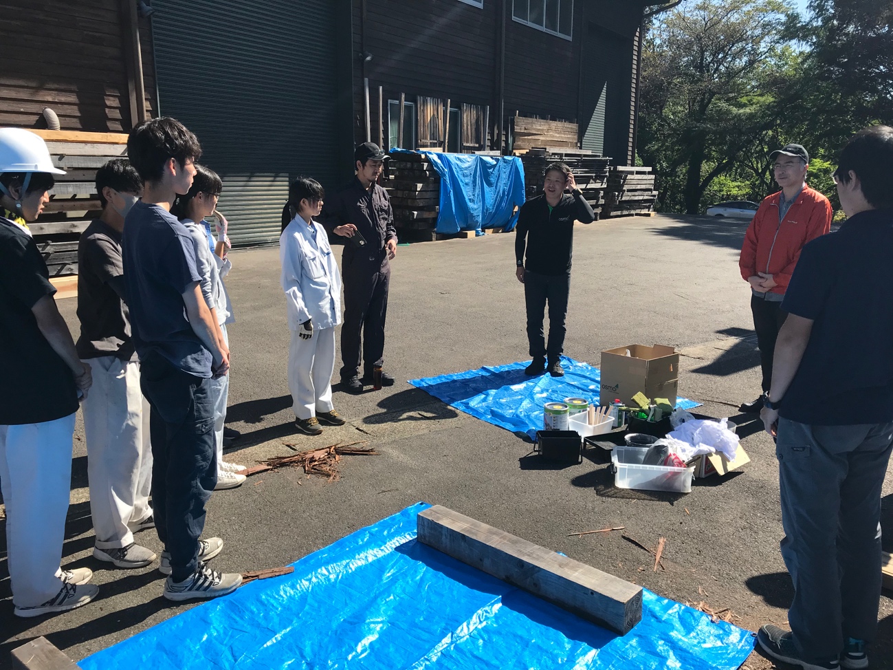 今回は塗装メーカーオスモさんの全面的な協力により、塗料レクチャーから、塗装道具の使い方、メンテナンスの方法まで、ワークショップ形式で手とり足取り教えて頂きました。それで自力建設の部材まで作成してしまうという何とも貴重な時間です。